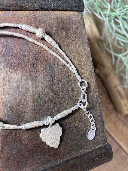 2重になっていて、可愛い葉っぱのチャームがポイントです。