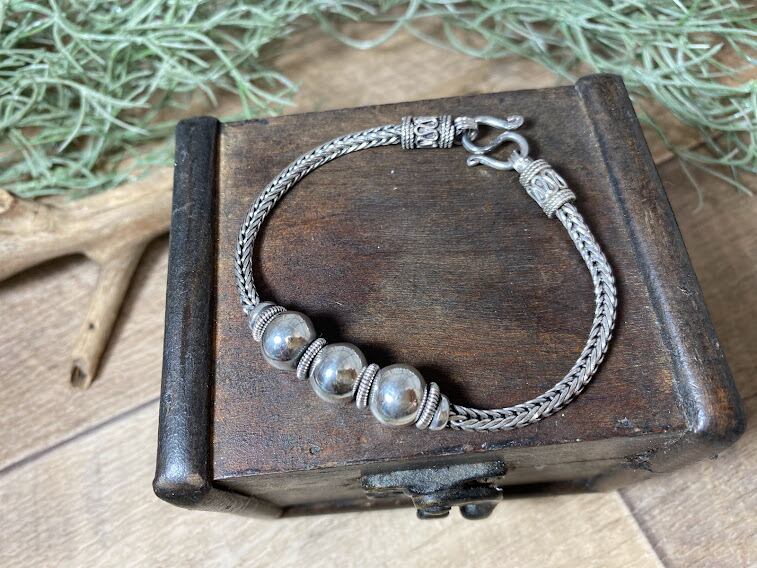 SLB-45 タイ シルバー バングル ブレスレット 珠 シルバーボール 編み込みチェーン アジアンテイスト エスニック 全長(約)20cm 幅(約)3mm 内周(約)19㎝